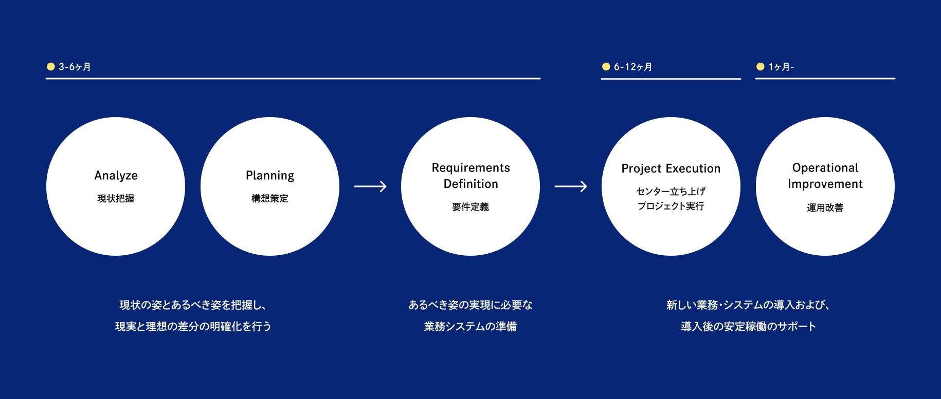 豊富な立ち上げ経験を活かし、センター立ち上げ時に発生しやすい難所を把握しながら、プロジェクトを円滑に推進します。タスクスケジュール管理やリスク・課題管理を徹底し、関係各所との調整をスムーズに進めることで、計画通りの立ち上げを実現します。